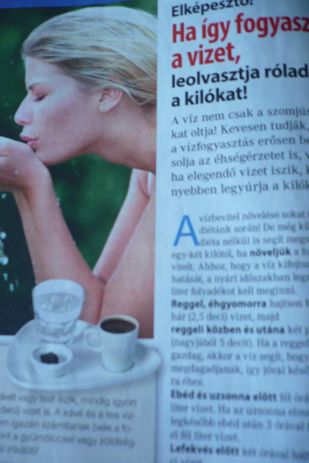 A vízbevitel növelése sokat segíthet a diétánk során!De még különösebb diéta nélkül is segít megszabadulni 1-2 kilótól,ha növeljük a folyadékbevitelt.Ahhoz,hogy a víz kifejtse jótékony hatását,a nyári időszakban legalább 2,5-3 liter folyadékot kell meginni.