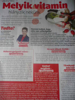 ,,Ha panaszai vannak,akkor minden bizonnyal orvoshoz fordulunk,aki a tünetek alapján meg tudja mondani,hogy miből szenvedünk hiányt.Ezt bizonyos esetekben laborvizsgálattal is megerősítik,mivel egyes vitaminok jelenléte a vérből is kimutatható.Azt is érdemes vizsgálni,hogy mi váltotta ki a hiányállapotot,és azt kell elsőként megoldani.Például ha krónikus gyulladás van a szervezetünkben,akkor biztos,hogy antioxidánsokra van szükségünk".-tanácsolta Dr. Heringh Zsanett belgyógyász.